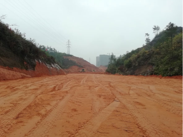 本工程所處區(qū)域地勢(shì)較為起伏,山丘林立,沿線主要為山地、魚(yú)塘、耕地、林地、場(chǎng)平地及局部民房等。相交道路除虎民路、環(huán)城路為現(xiàn)狀道路(金山大道在建)外,其他道路均為規(guī)劃道路(未建)。